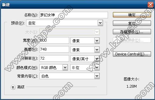 第1步:文件→新建,新建一个大小为600×748像素的文档。